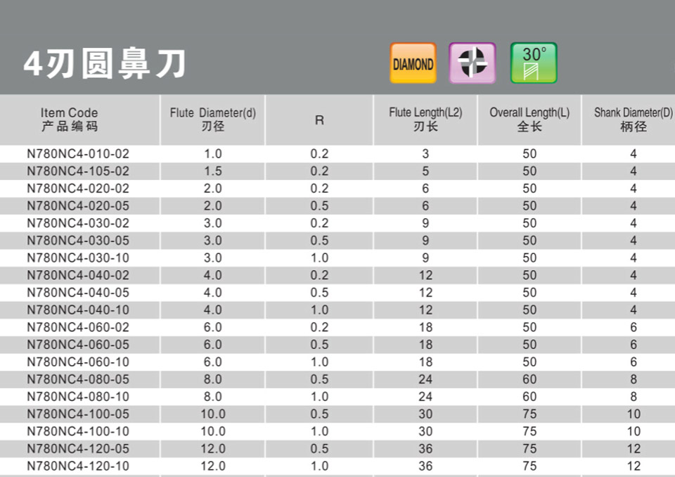 不等分不等螺旋加長(zhǎng)圓鼻刀4刃