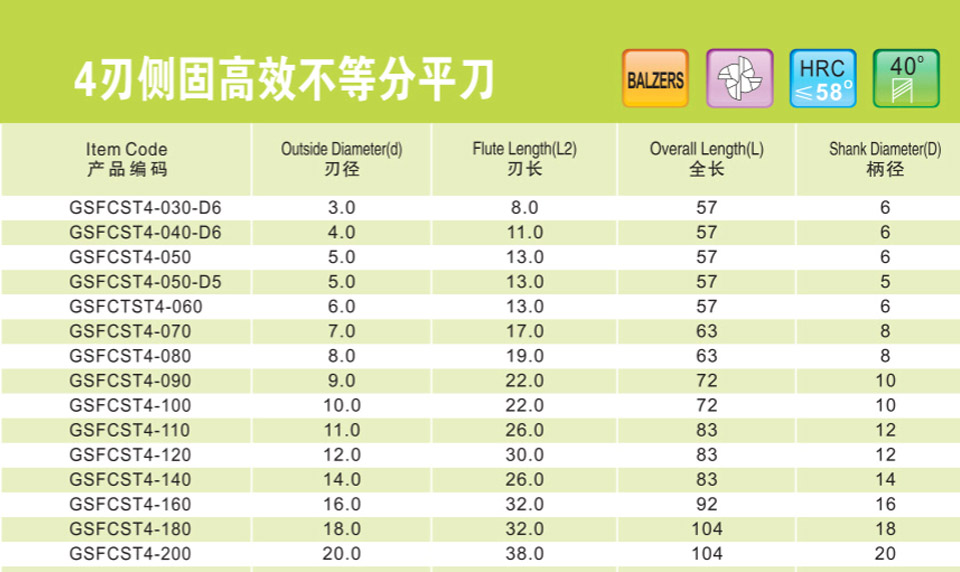 不等分不等螺旋加長平刀4刃