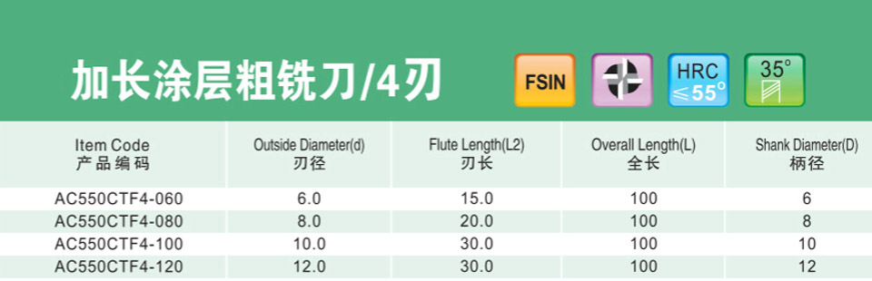 加長涂層粗銑刀4刃