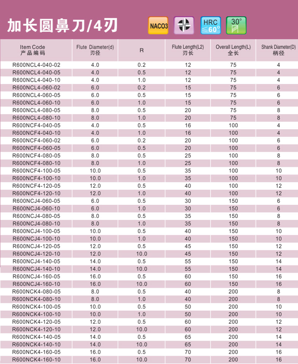 4刃加長高速圓鼻刀